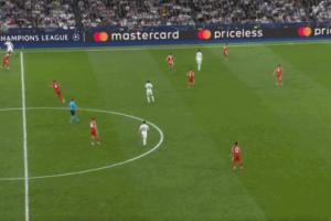 阿诺德后场长传发动攻势,巴尔韦德插上,诺伊尔出击赶在于阿方索之前,将皮球截获。