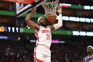 花得很彻底!阿门击地砸传助攻伊森底角三分球 火箭领先28分