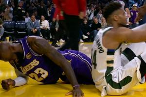 GIF-詹姆斯高难度后仰中投命中!