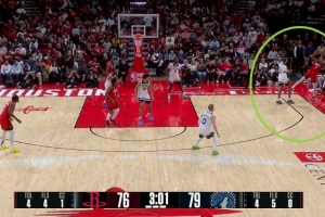 GIF-杜兰特砸麦克丹尼尔斯出界,森林狼挑战成功,杜兰特踩在界外先出界