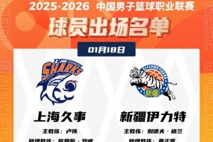 体育资讯1月18日讯 今晚19:35,上海主场迎战新疆,赛前大名单出炉。