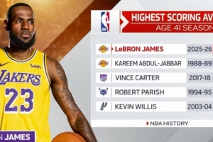 稳定!詹姆斯和东契奇2026年来各砍9次20+ 并列联盟最多