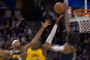 是他自己脱手了!拉拉维亚上篮球出界 掘金挑战成功拿回球权