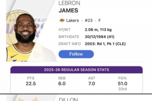 对此,美媒Basketball Forever晒出了本赛季詹姆斯和狄龙的年龄、数据对比,