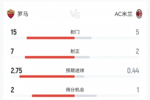 体育资讯1月26日讯 本轮意甲,罗马1-1米兰。双方全场重点数据对比如下↓(主队罗马在前)