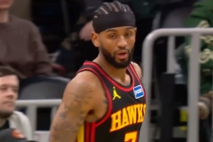 梅尔顿一防二转身血帽 裁判晚响哨吹犯规 科尔挑战但是失败