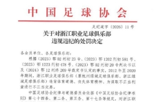 一,扣除浙江职业足球俱乐部2026赛季相应的职业联赛积分5分;