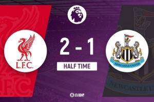 半场结束,利物浦暂2-1纽卡斯尔。