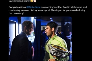 纳达尔写道:“祝贺阿尔卡拉斯赢得澳网冠军并达成全满贯壮举!”