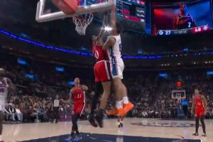 举火烧天!伦纳德弧顶遭遇夹击直接冲筐单臂砸扣博纳