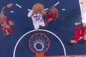 举火烧天!伦纳德弧顶遭遇夹击直接冲筐单臂砸扣博纳