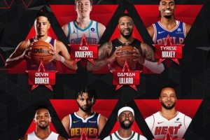 布克(太阳)、克尼佩尔(黄蜂)、利拉德(开拓者)、马克西(76人)、米切尔(骑士)、穆雷(掘金)、波蒂斯(雄鹿)、鲍威尔(热火)。