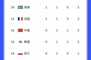 冬奥会奖牌榜:中国1银1铜第12,瑞士单日夺2金升第二日本升第三