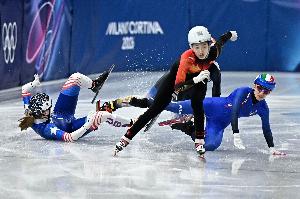 短道速滑混合团体接力半决赛:美国队带倒韩国队,韩国申诉未果
