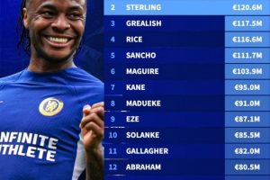 体育资讯2月13日讯 经历了在切尔西长期无球可踢的处境后,31岁英格兰边锋斯特林加盟费耶诺德。根据德国转会市场的统计,斯特林职业生涯转会费总计达到了1.206亿欧,位居英格兰球员次席。
