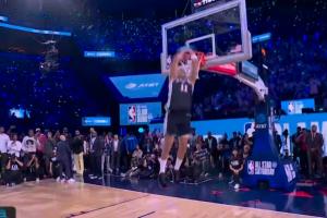 值得一提的是,他刚刚用一记正面胯下还手灌篮拿到本届赛事唯一的一次满分。