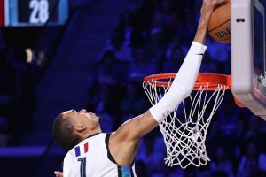 本次全明星赛,文班亚马出战2场,分别得到14分6篮板3盖帽、19分2篮板。在世界队对阵美国新星队的比赛中,双方共送出7次盖帽。