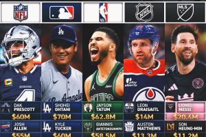 体育资讯02月18日讯 FOX体育统计了全美五大联盟的TOP5薪资,大谷翔平全美最高7000万美元,梅西2040万美元,塔图姆6280万美元。
