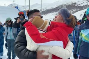 赛后苏翊鸣冲向父母庆祝,妈妈一边帮苏翊鸣抹泪一边说道:“我X你真厉害,儿子生日快乐!这是最好的生日礼物。”