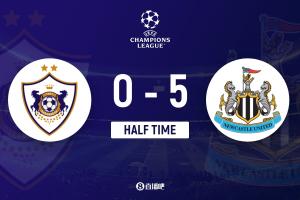第45+1分钟,戈登制造点球,随后亲自主罚命中,纽卡5-0领先卡拉巴赫↓