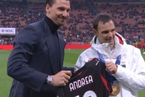 为了表彰他的成就,米兰高层伊布代表俱乐部向其赠送了一件极具纪念意义的10号定制球衣,球衣背面印有他的名字。这一互动环节也成为了当晚圣西罗球场感人的一幕。