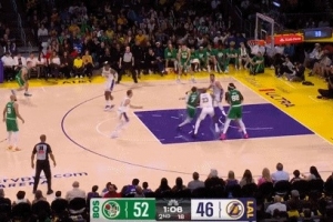 GIF-杰伦·布朗突破上篮被詹姆斯左手钉板大帽