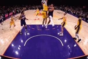 GIF-格雷森·阿伦突破被海斯犯规,湖人挑战失败,但没有罚球