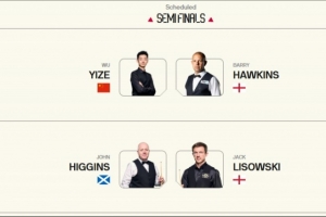 体育资讯2月28日讯 2026斯诺克威尔士公开赛半决赛对阵出炉,吴宜泽将战霍金斯。