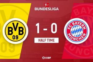 半场结束,多特1-0拜仁。