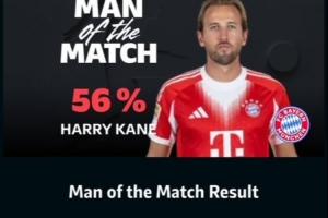 体育资讯3月1日讯 拜仁在本轮德甲3-2击败多特,凯恩以56%的票数当选全场最佳。