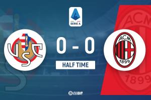 上半场补时1分钟,米兰0-0克雷莫内塞。