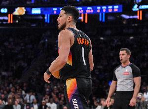 第三节太阳球星布克迎来爆发,单节投篮9中6(三分6中3)、罚球3中3,轰下18分1篮板1抢断,率队继续建立优势。