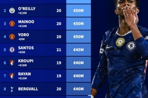 1、埃斯特旺(切尔西,18岁):8000万欧