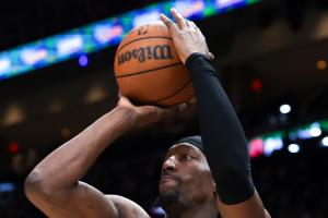 半场比赛,热火球星阿德巴约狂轰43分4篮板2抢断1盖帽。