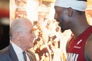 赛后,热火总裁帕特·莱利与阿德巴约见面时调侃道:“要是我,在你得70分的时候就会把你换下了!但是你做到了!干!”