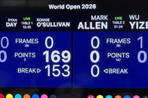 斯诺克世界公开赛:吴宜泽5-1艾伦进四强,半决赛战奥沙利文