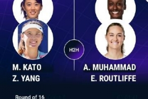 杨钊煊/加藤未唯组合以2-6 1-6不敌6号种子穆罕默德/卢特利芙,无缘晋级八强。