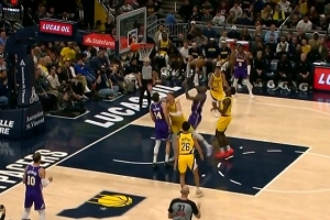 摧枯拉朽!詹姆斯送妙传 海斯起飞力压鲍威尔隔扣打成2+1