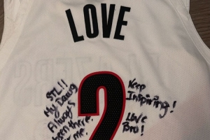 乐福在球衣上面写着:“圣路易斯!我的兄弟,一直都支持着我,希望你继续激励大家!家乡英雄!”