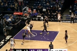 打急眼了?杨瀚森扣篮后被丹尼斯一把推倒 吐舌微笑回应