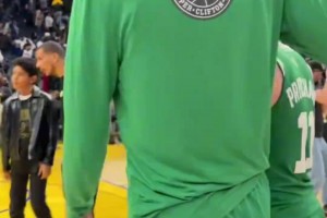 比赛时间走完东契奇投个半场 伊森从替补席助跑一把将球打飞场外