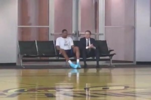 无奈!里夫斯突破造了杜兰特的犯规 后者冲裁判摊了个手