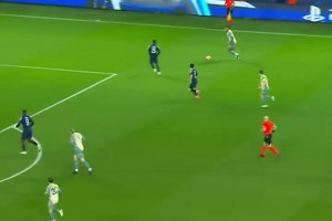 这球传的好!B费远距离传中找到后点的多尔古,但后者打门被扑出
